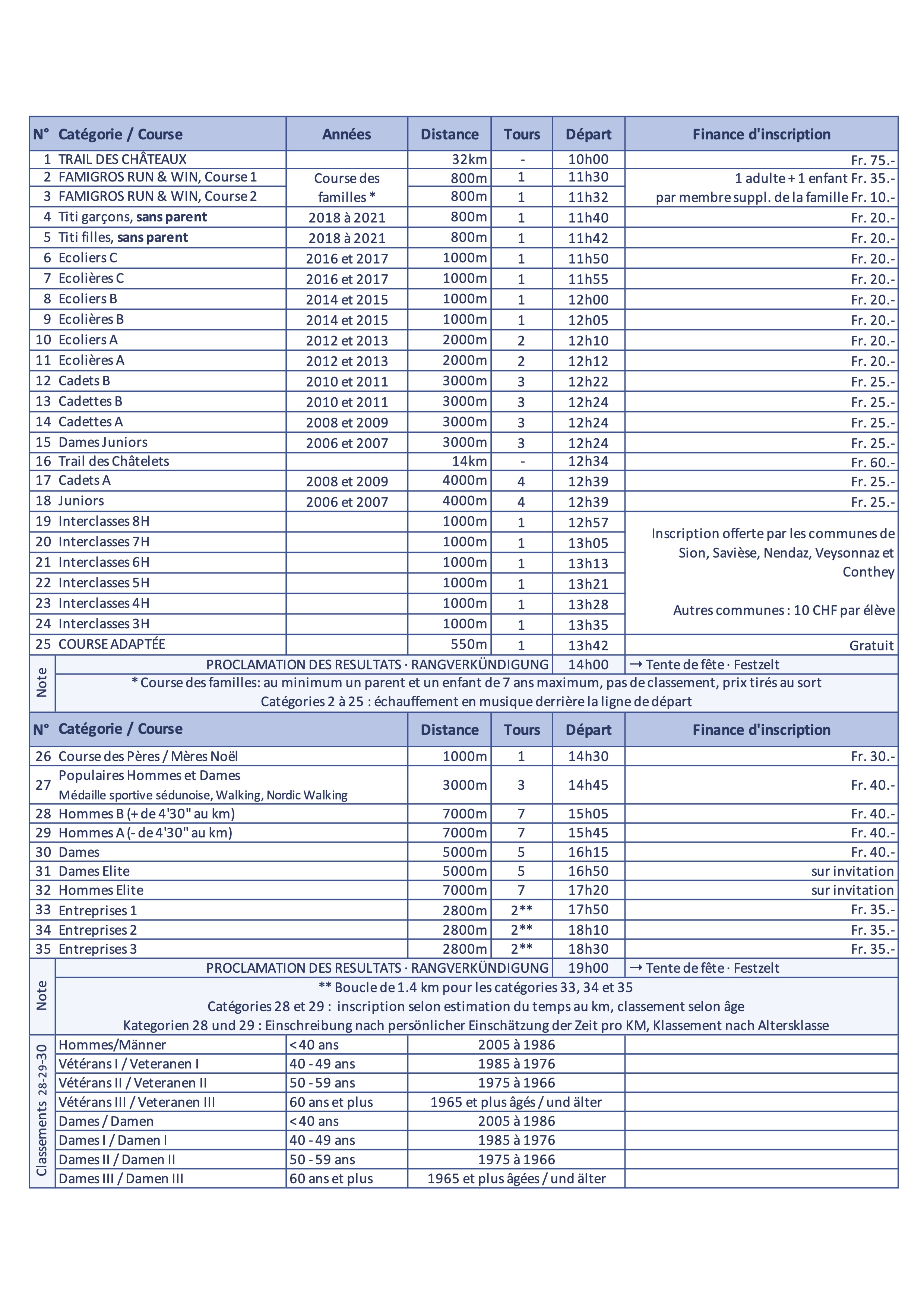 Horaire et programme